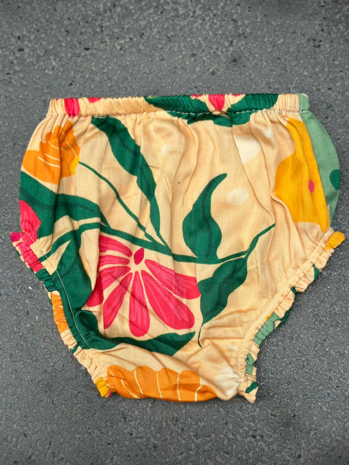 • Vibrant floral print in bold colors.
